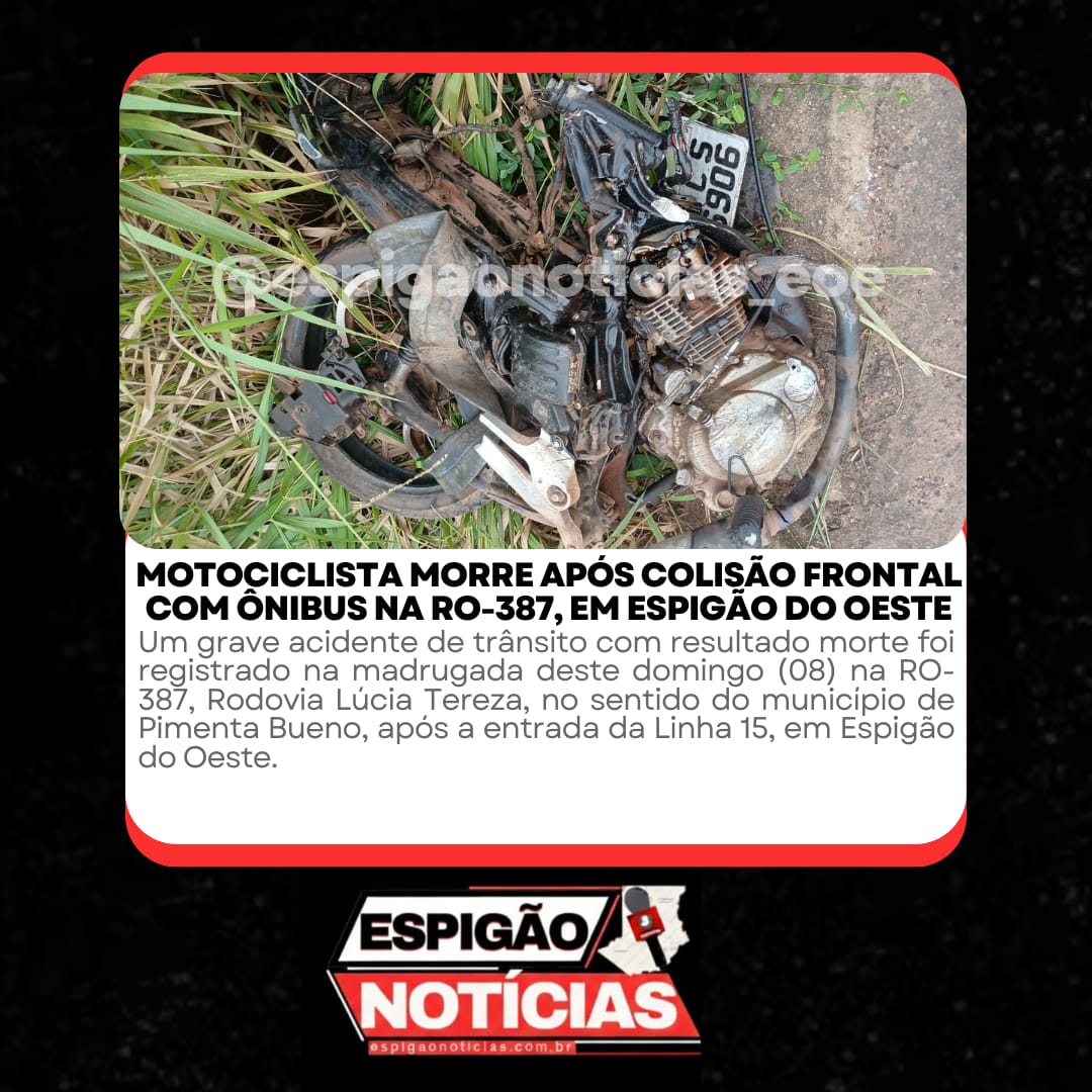 Policial Motociclista morre após colisão frontal com ônibus na RO-387, em Espigão do Oeste 08/03/2026 09:25