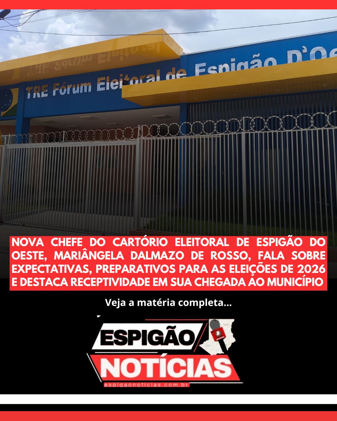 Geral Nova Chefe do Cartório Eleitoral de Espigão do Oeste, Mariângela Dalmazo de Rosso, Fala Sobre Expectativas, Preparativos para as Eleições de 2026 e Destaca Receptividade em Sua Chegada ao Município 11/11/2025 09:57