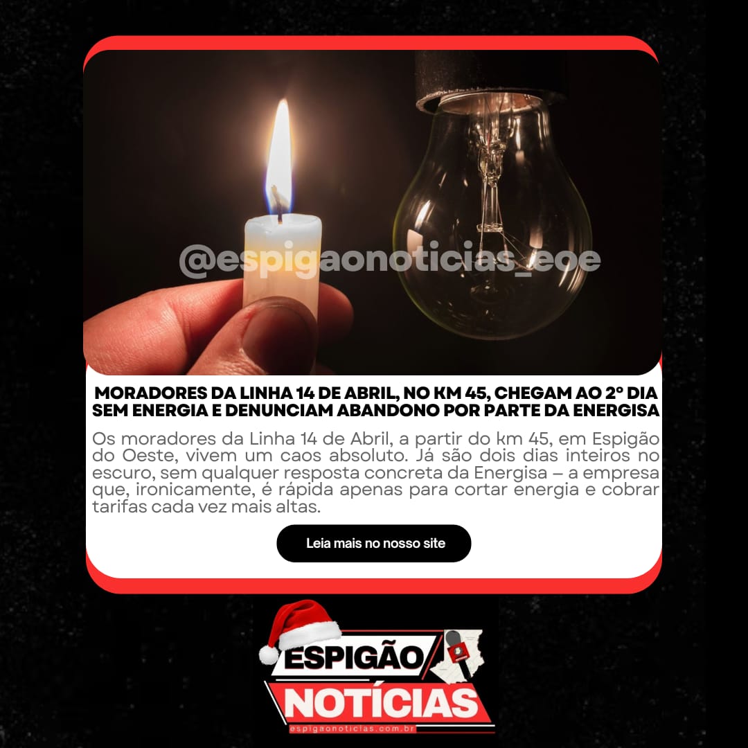 Geral Moradores da Linha 14 de Abril, no km 45 em diante, chegam ao 2º dia sem energia e denunciam abandono total por parte da Energisa 27/11/2025 11:15
