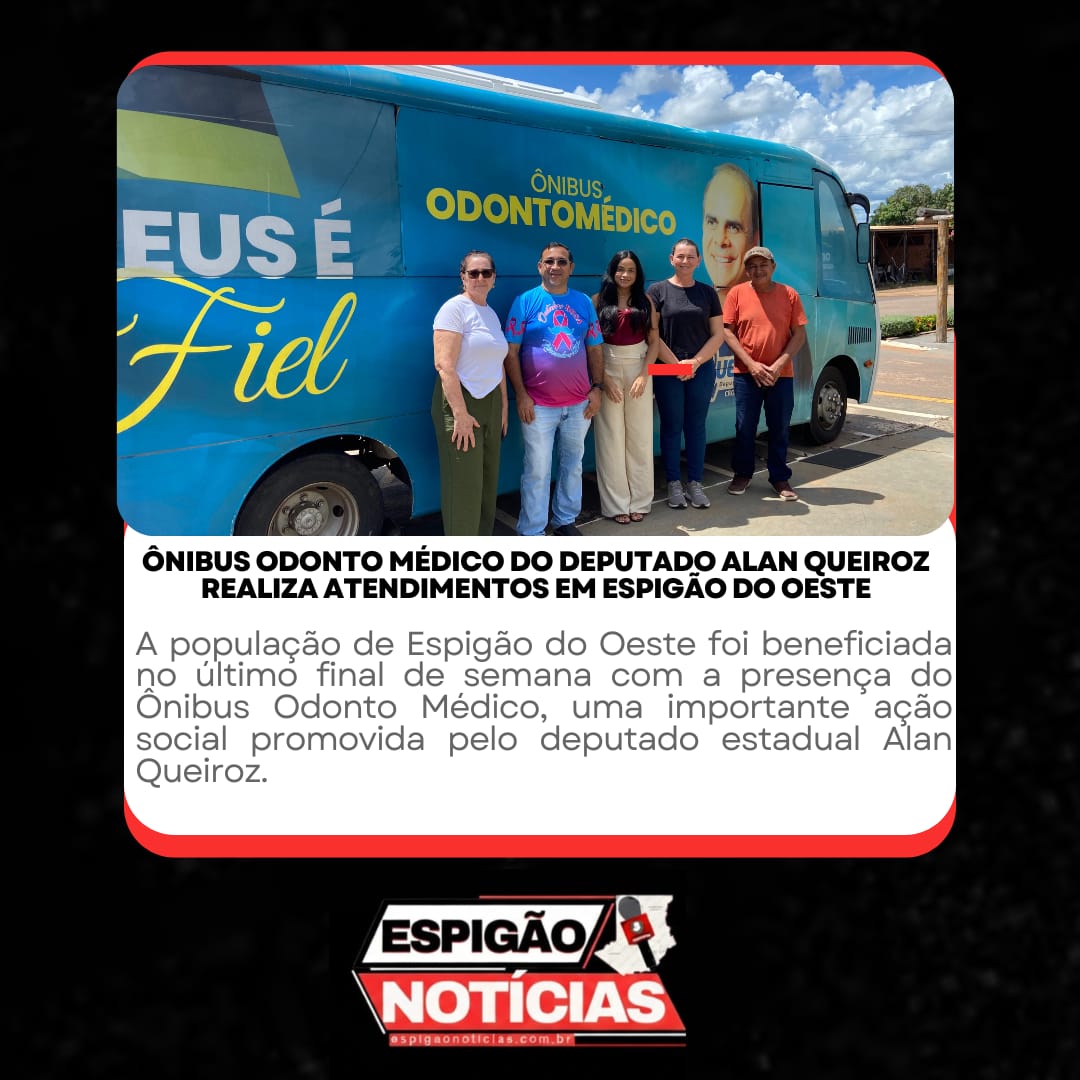 Política ÔNIBUS ODONTO MÉDICO REALIZA 90 ATENDIMENTOS EM ESPIGÃO DO OESTE PELO PROJETO “TODOS DIREITO DE SORRIR” 13/04/2026 16:51