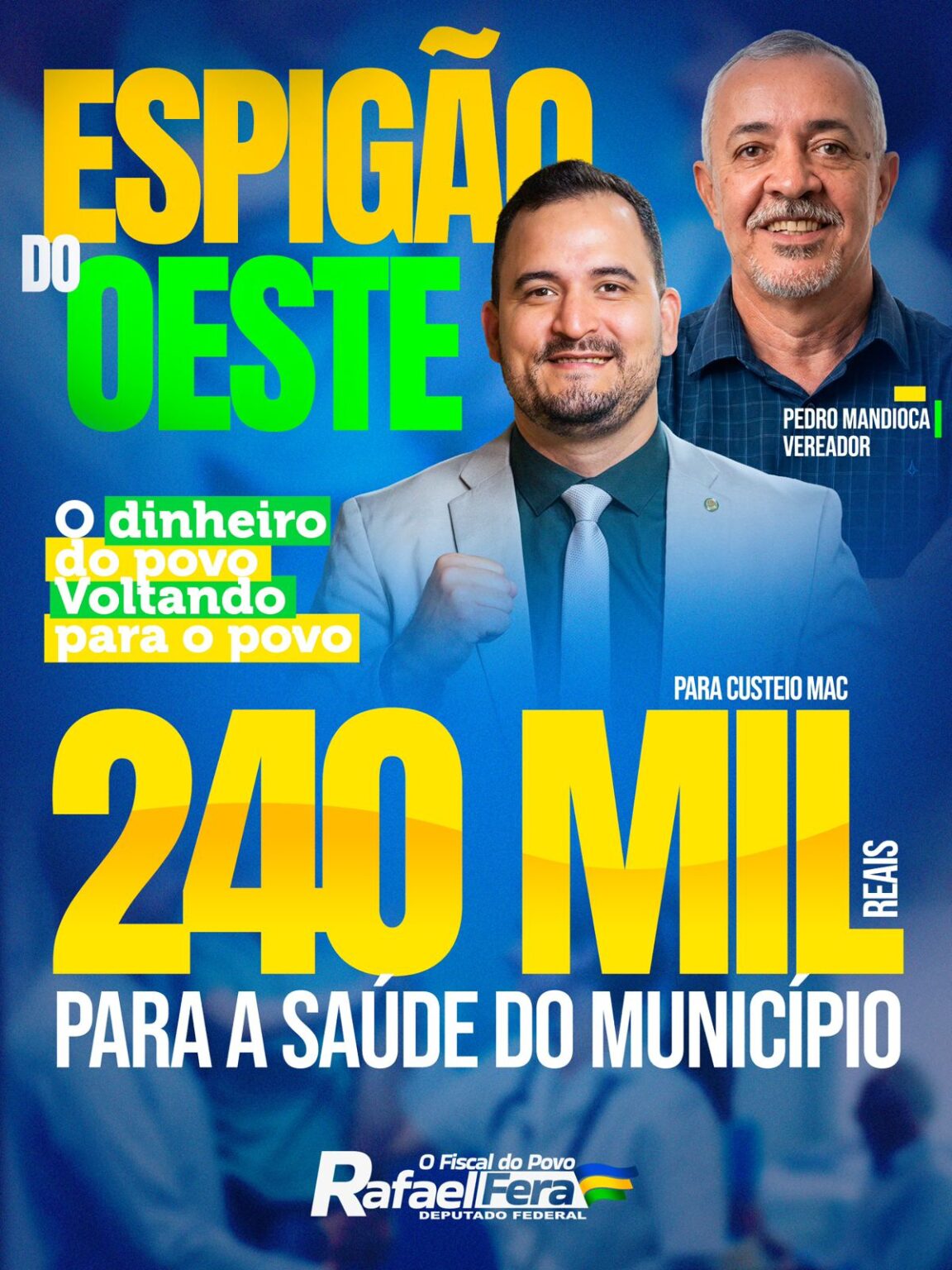 Política O deputado estadual Alan Queiroz destina mais de R$ 3,8 milhões para Espigão do Oeste em 2025 e 2026: recapeamento, cirurgias, kits odontológicos, e apoio a eventos 13/02/2026 15:11