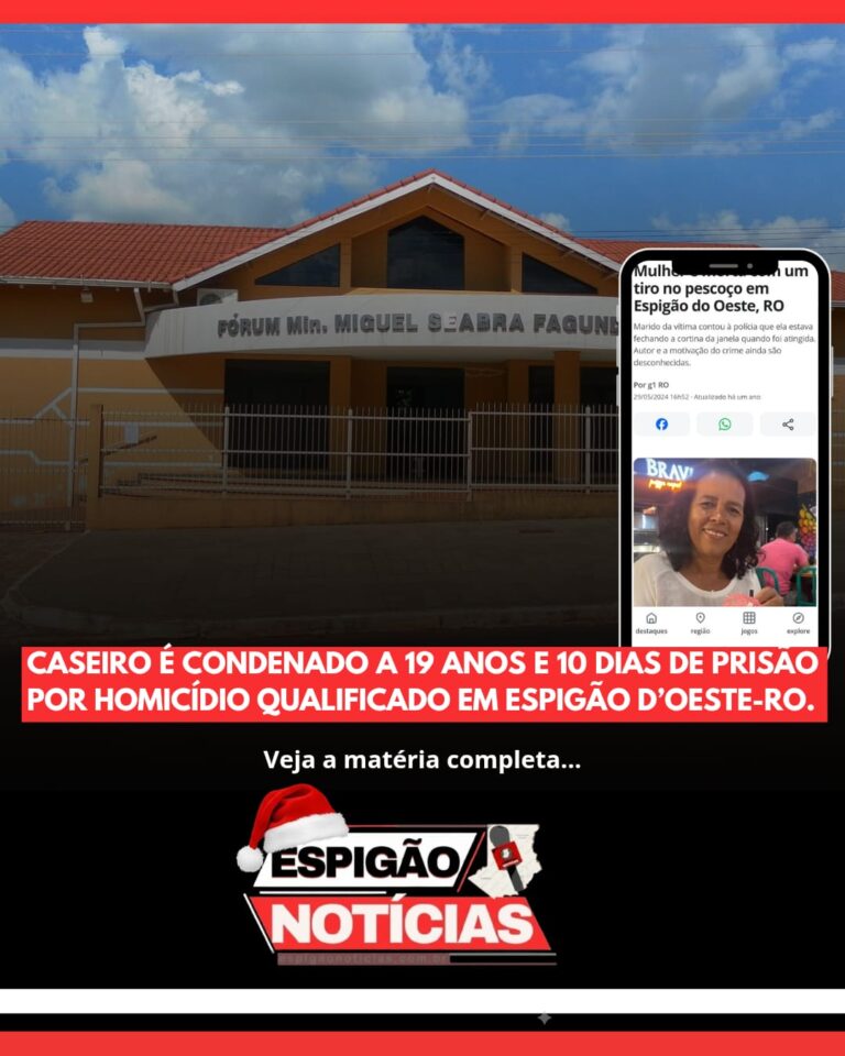 Espigão d’Oeste (RO) – Nesta quinta-feira, 27 de Novembro de 2025, ocorreu no Fórum da Comarca de Espigão d’Oeste o julgamento do caseiro acusado de matar Maria José de Jesus Hoffmann, na zona rural do município, em 28 de maio de 2024. O réu foi condenado a 18 anos de prisão por homicídio qualificado e a 1 ano e 10 dias por porte ilegal de arma de fogo, totalizando 19 anos e 10 dias de reclusão.