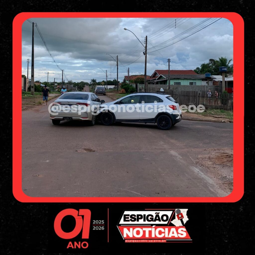 Um acidente de trânsito foi registrado há poucos instantes na esquina da Avenida Sergipe com a Rua Pará, no centro de Espigão do Oeste, próximo ao Comercial Aliança.