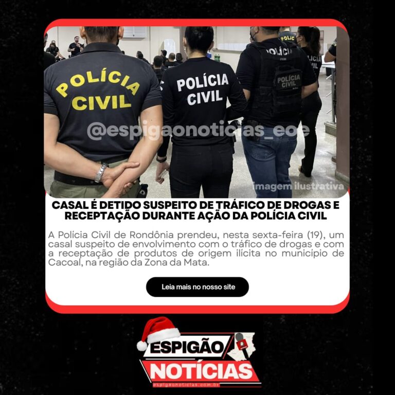 A Polícia Civil de Rondônia prendeu, nesta sexta-feira (19), um casal suspeito de envolvimento com o tráfico de drogas e com a receptação de produtos de origem ilícita no município de Cacoal, na região da Zona da Mata.