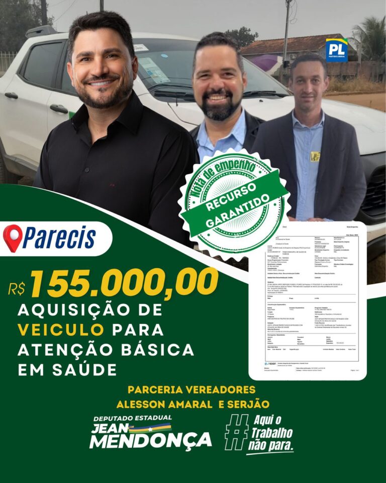 O município de Parecis acaba de receber um importante reforço para a área da saúde. O deputado estadual Jean Mendonça assegurou a destinação de R$ 155 mil em emenda parlamentar, recurso que será investido diretamente no fortalecimento da Atenção Básica.